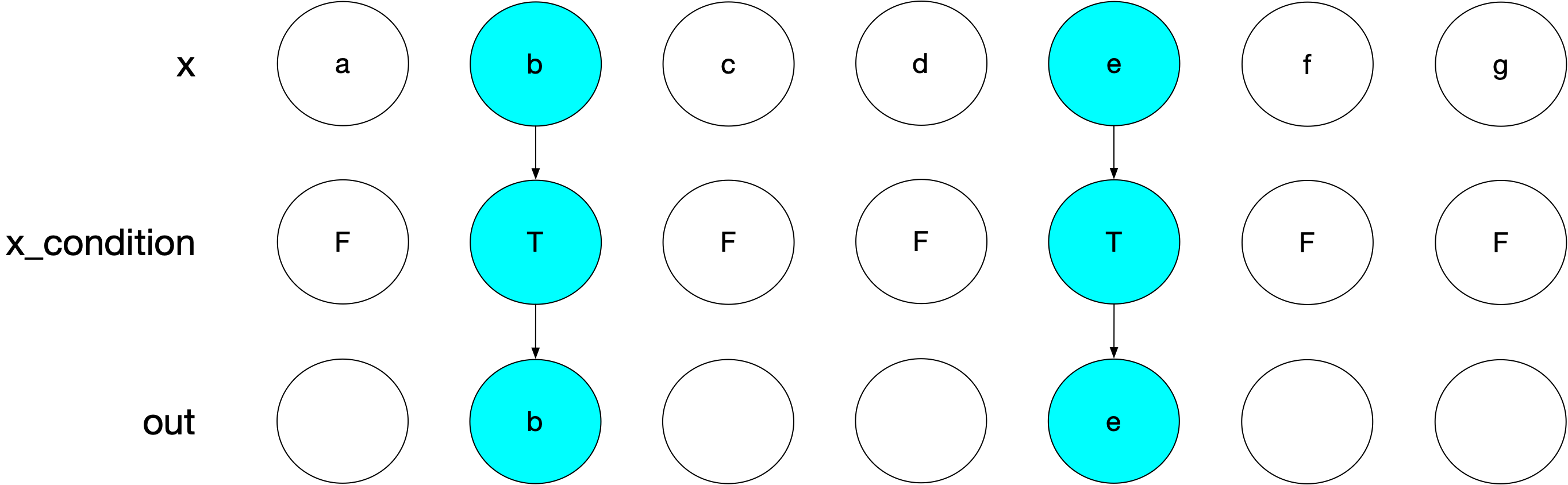 Instead, you must pre-slice x to a length that matches the locations that x_condition points to in out, i.e.:
