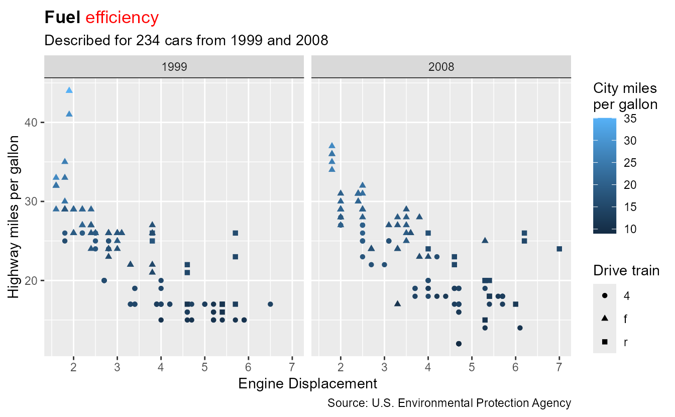 labs(title = "**Fuel** {.red efficiency}") +