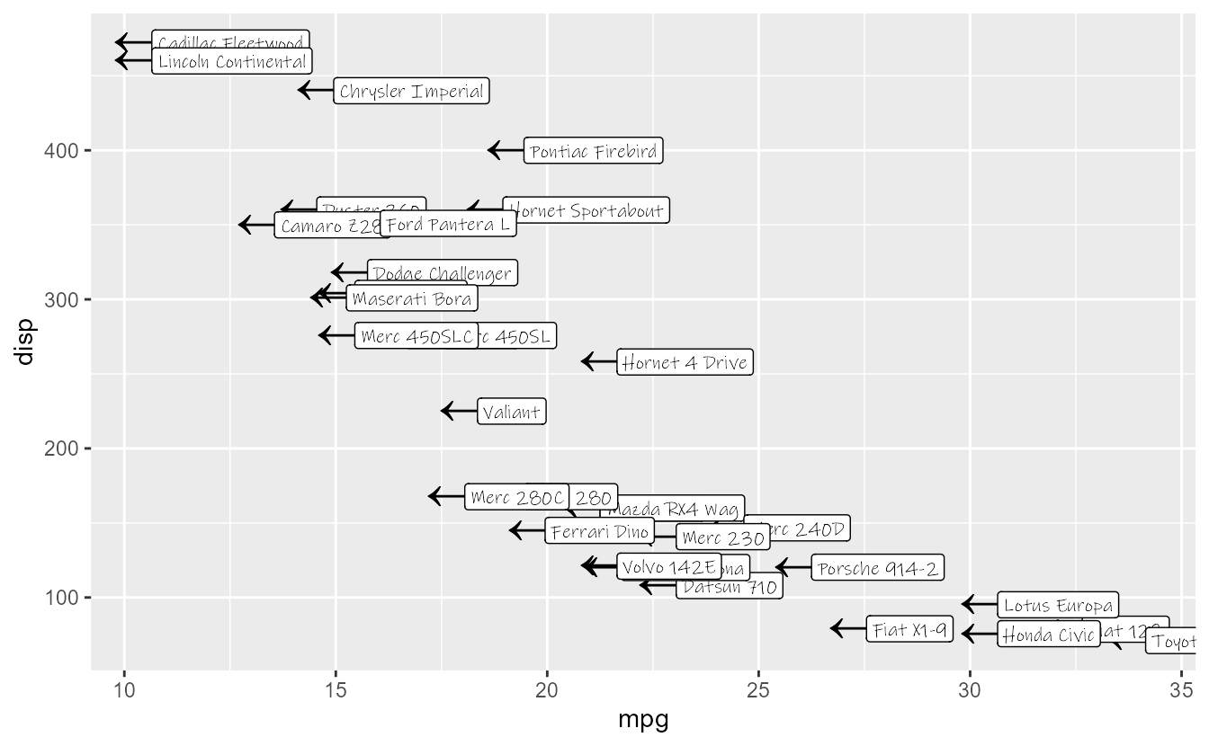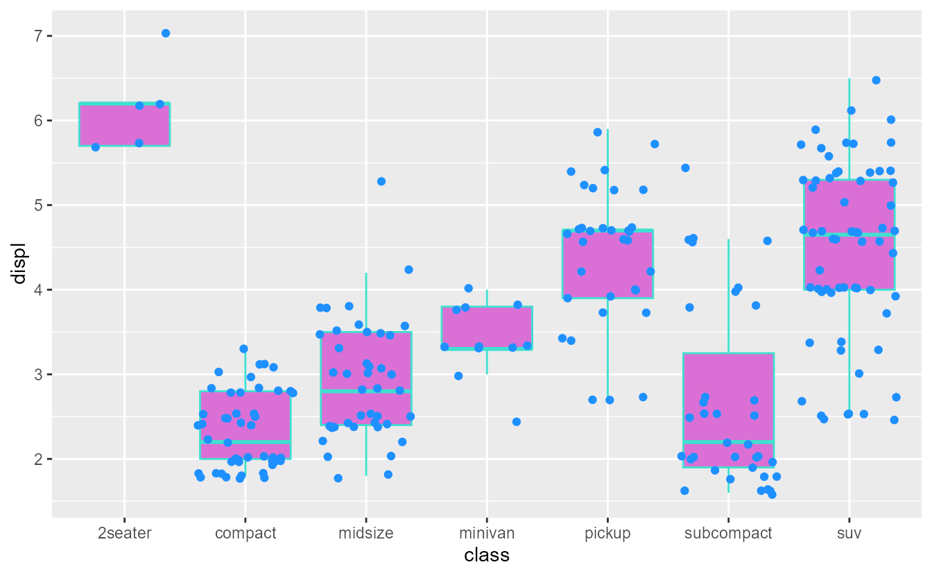 In addition to these elements in ggplot2, extension packages can also define custom elements. Generally speaking, these elements are variants of the elements listed above and often have slightly different properties and are rendered differently. For example